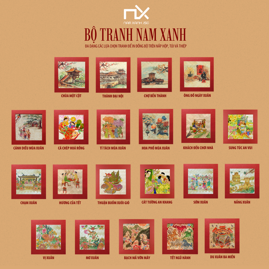 Nam Xanh cung cấp đa dạng mẫu tranh vẽ tay truyền thống với nhiều phong cách nghệ thuật khác nhau, giúp khách hàng dễ dàng lựa chọn và thể hiện những tác phẩm yêu thích trên hộp quà tặng. Mỗi bức tranh đều được chăm chút tỉ mỉ, mang đậm dấu ấn văn hóa và tinh thần nghệ thuật, góp phần làm nên giá trị thẩm mỹ cao cho sản phẩm.